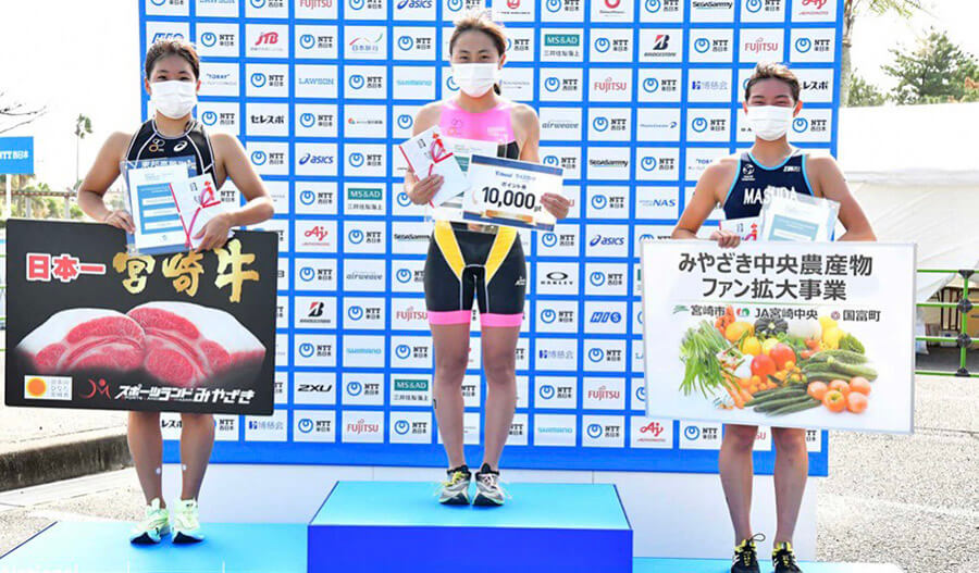 風速8mの中、後続集団を引き離して20km単独逃げ切り成功(バイクラップ1位)、そのままランでも差を広げて優勝という展開でした。